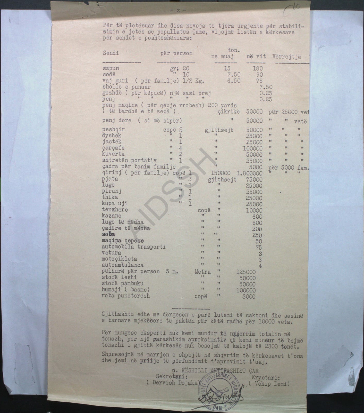 Ekspozimi i dokumenteve arkivore nga AIDSSH lidhur me çamët  është një hap i rëndësishëm drejt evidentimit të së vërtetës historike. Kemi mundur të evidentojmë një koleksion dokumentesh nga Fondi i Ish-Sigurimit të Shtetit që lidhen direkt me historinë e përzënies së çamëve nga tokat e tyre, dëmet ekonomike dhe masakrat e kryera ndaj tyre. Këto dokumente, që datojnë nga periudha para dhe pas Luftës së Dytë Botërore, përmbajnë raporte, relacione dhe statistika që hedhin dritë mbi një histori të fshehur për shumë kohë.