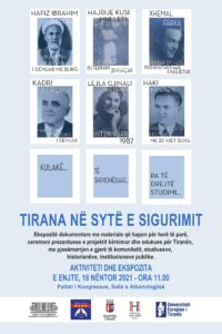 u zhvillua në mjediset e Pallatit të Koncerteve (Ish-Pallati i Kongreseve”), më 18 nëntor 2021, projekt i AIDSSH në bashkëpunimin me Shoqatën “Tirana”, Institutin e Historisë, ASA dhe Universitetit Europian të Tiranës, me mbështetjen e Bashkisë Tiranë Ekspozita arkivore me materiale që u hapën për herë të parë, ngriti siparin e aktiviteteve të Dialogut për Tiranën, mbi gjysmëshekullin kur kryeqyteti u survejua, u përndoq dhe u shtyp nga regjimi komunist.
