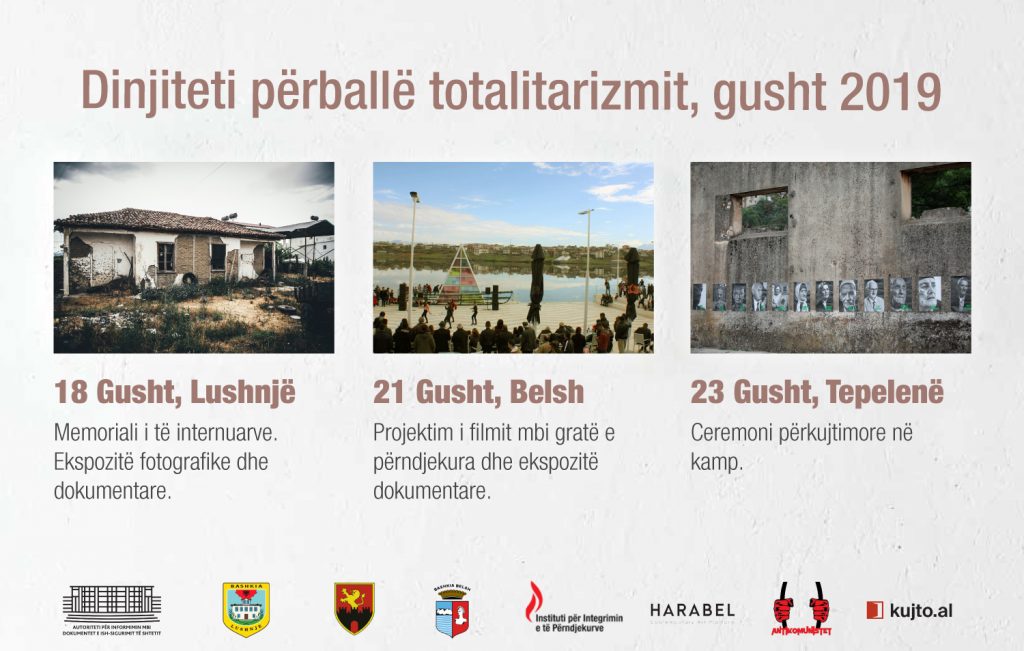 Aktivitetet përkujtimore të organizuara nga AIDSSH, në bashkëpunim me institucionet partnere, pushtetin lokal dhe komunitetin e të përndjekurve, në kuadër të 23 gushtit, Ditës Europiane të Viktimave të Regjimeve Totalitare dhe 30 gushtit, Ditës Ndërkombëtare të të Zhdukurve, do të zhvillohen në ish-kampet dhe vendet e internimit në Lushnjë, Belsh, Tepelenë dhe Tiranë, duke dokumentuar historinë individuale dhe familjare të të internuarve në Tepelenë e po ashtu, vijimësinë e dënimeve shumëvjeçare në kampe apo vende të punës në Lushnjë e Belsh, sipas kalendarit: