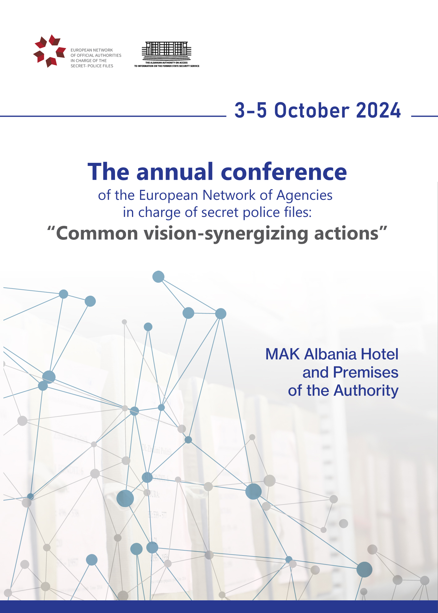 Konferenca, e cila për herë të parë organizohet në Shqipëri, zhvillohet me temën “Vizion i përbashkët – veprime sinergjike” dhe përfshin fjalime nga znj. Gentiana Sula, Kryetare e Bordit të Autoritetit, z. Karl Bergner, Ambasadori i Gjermanisë në Shqipëri, si dhe përfaqësues nga Kuvendi i Shqipërisë. Në fokus të diskutimeve është krijimi i arkivës së dokumenteve të Ish-Sigurimit të Shtetit në Shqipëri, si dhe arritjet në fushën e digitalizimit të këtij dokumentacioni.