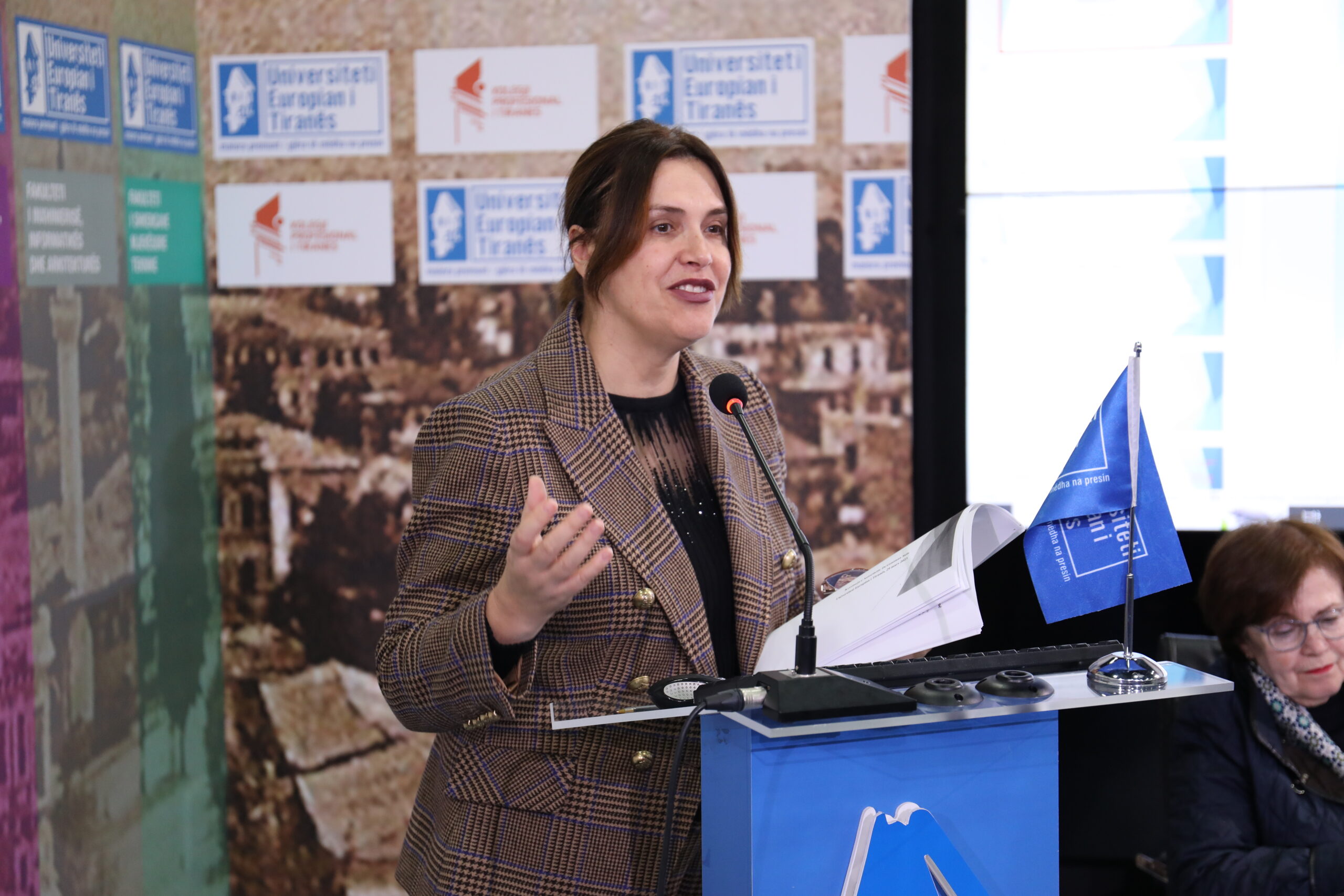 Kryetarja e Autoritetit, Dr. Gentiana Sula ligjëratë në Universitetin Europian të Tiranës.