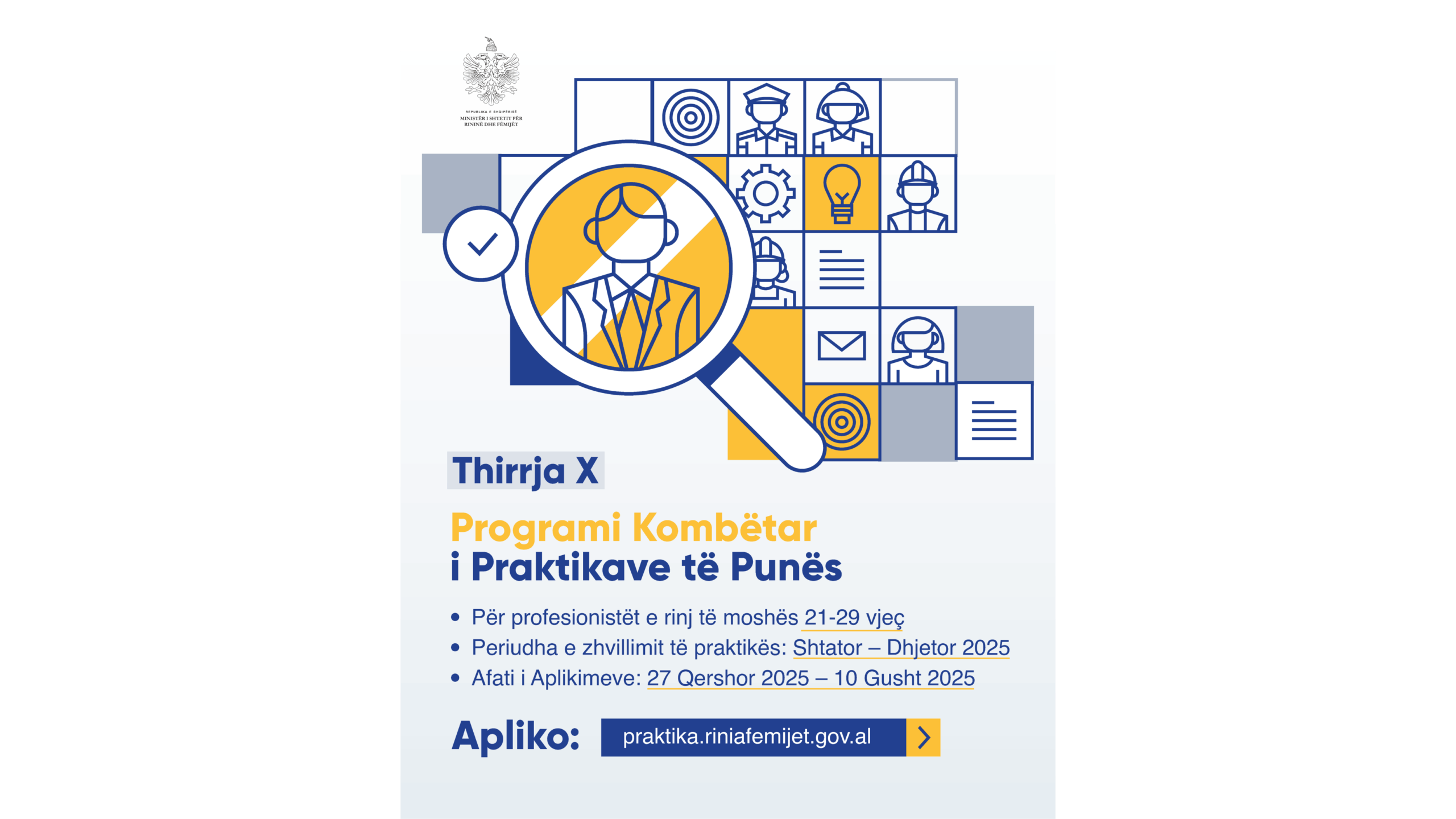 Nxitoni të aplikoni nga 27 Qershor 2025 deri më 10 Gusht 2025 në praktika.riniafemijet.gov.al