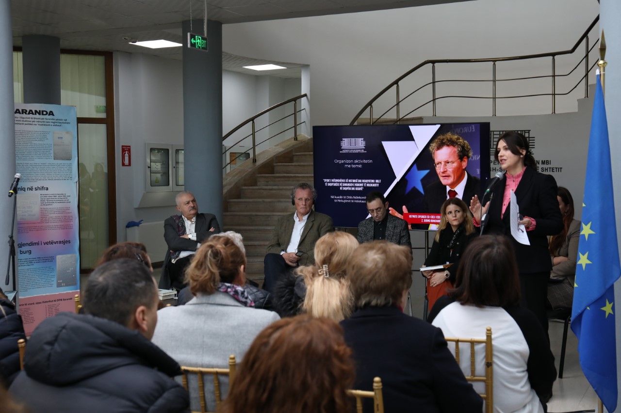 Gazetarja e mirënjohur, Monika Stafa, autore e librit “Hebrenjtë në Shqipëri”, e cila moderoi aktivitetin u shpreh se “Lufta e Dytë Botërore ishte një kapitull i turpshëm jo vetëm për Gjermaninë por për të gjithë Europën që heshti dhe u kujtua të vepronte kur ishte tepër vonë. Dhe ende sot politikanët evropianë nuk kanë mësuar asgjë nga shkatërrimet e mëparshme të kontinentit”.